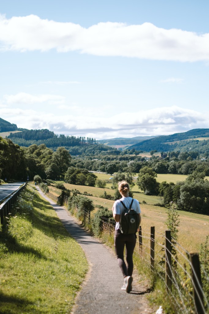 Auch hier haben wir wieder nicht auf dem zahlungspflichtigen Parkplatz direkt am Schloss geparkt, sondern haben uns einen öffentlichen (kostenfreien) Parkplatz im nahegelegenen Ort „Kilmore“ gesucht (gegenüber vom Coop, bei der Great Glen Pharmacy), um noch ein Stück zu gehen und mehr von der Umgebung zu sehen. Vom Parkplatz aus sind wir circa eine halbe Stunde einen schönen Weg entlang der Felder bis hin zum Loch Ness und der Burg gelaufen.