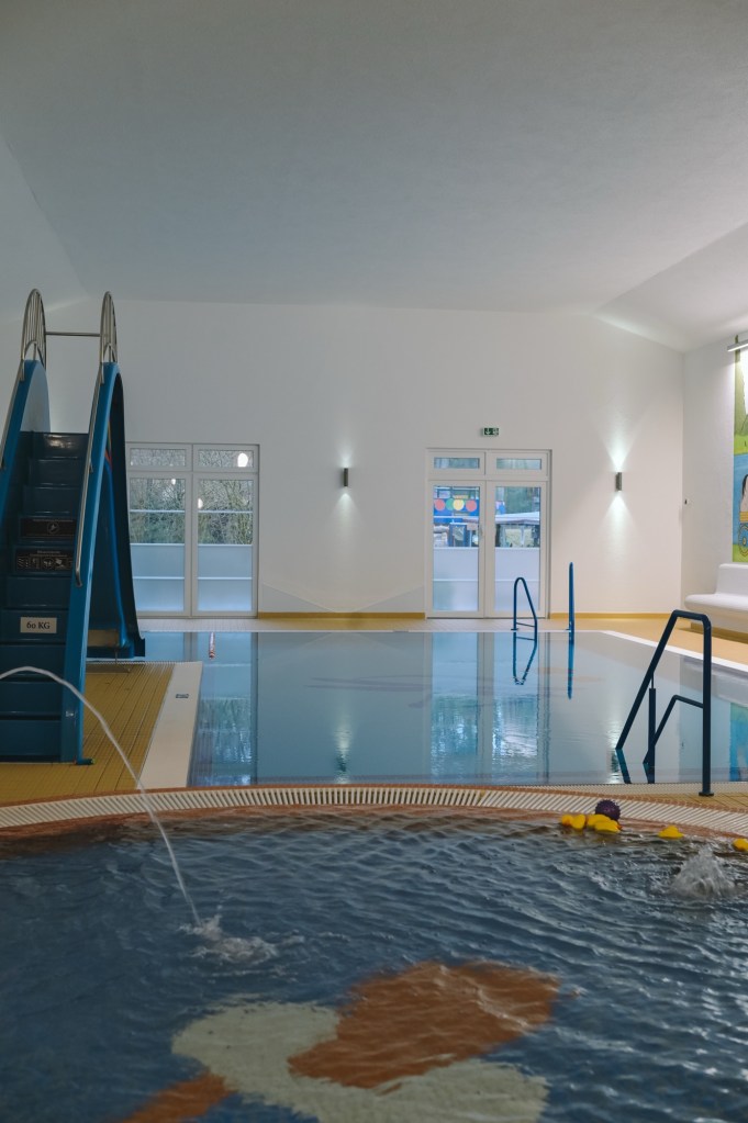 Wir haben unsere Tage vorrangig an der frischen Luft verbracht, waren auf den unterschiedlichen Spielplätzen, haben Ponys, Esel und Lama an ihrem Gehege auf dem Hotelgrundstück besucht, waren am See und im angrenzenden Wald spazieren (hier hat man übrigens das Gefühl, man hat den ganzen Wald für sich und es herrscht eine unglaublich wohltuende Stille). Wir wurden allerdings auch einen Tag von fiesem Dauerregen heimgesucht und flücheten dann ins Spielzimmer und in den Pool. Auch eine Sauna gibt es, in der man zwischendurch mal entspannen kann.