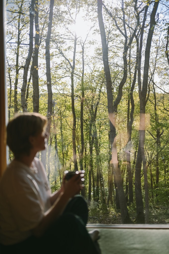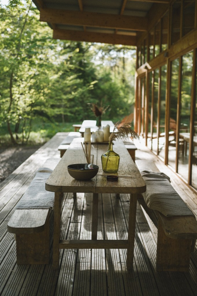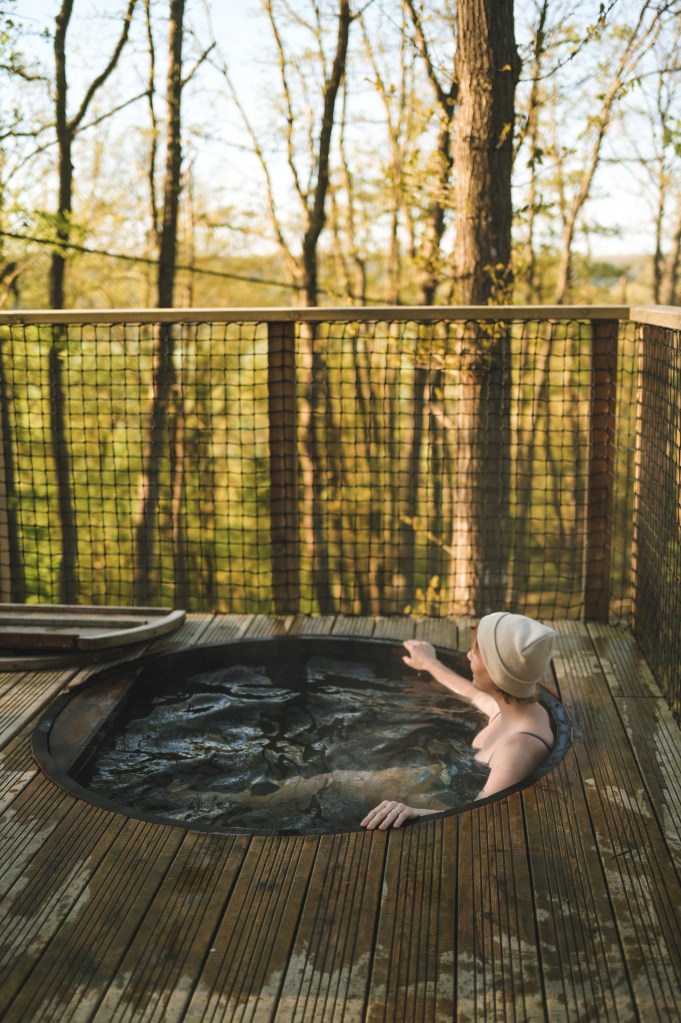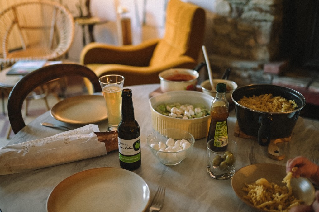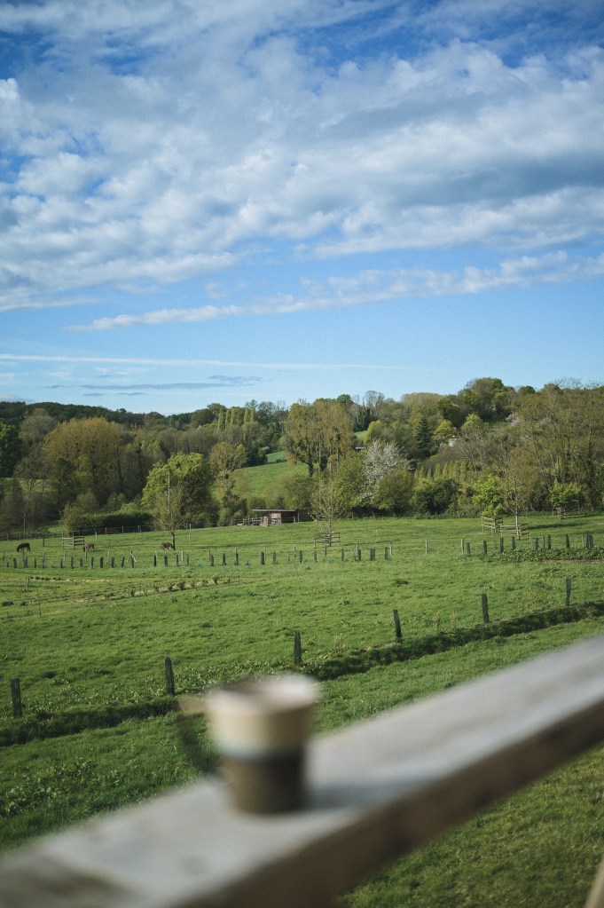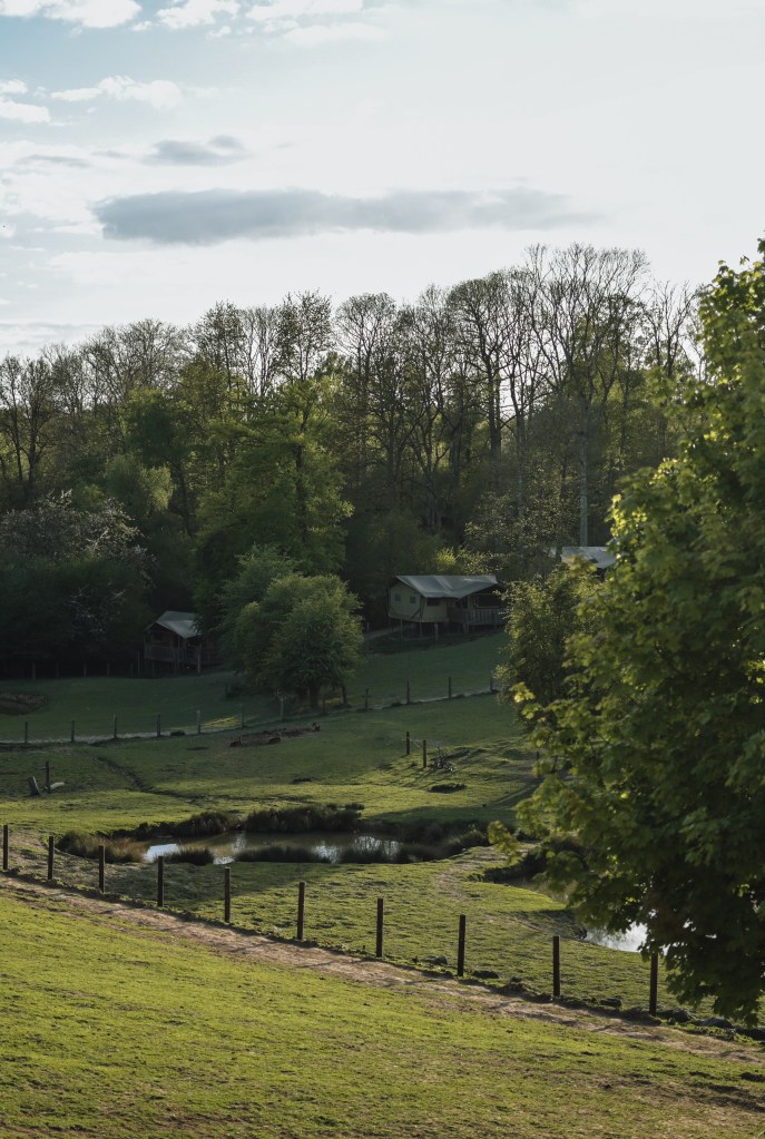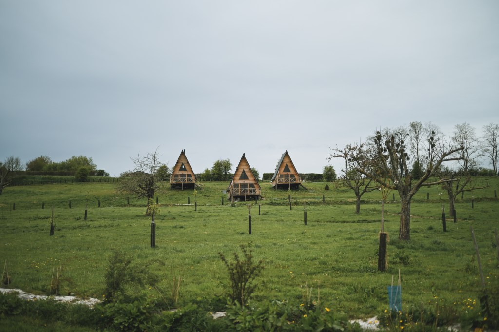 Die Hütten liegen mitten in einem Waldstück im Westen (?) der Normandie und sind unglaublich schön! Besonders gefallen hat mir der Kamin in der Hütte, die riesigen Fenster an der Sitzecke sowie am Doppelbett und einem Hot Tube auf der Terrasse mit Blick in die Bäume. Die Hütten stehen mit so viel Abstand zu einander, dass man absolute Privatsphäre hat. Sowohl das Frühstück, als auch das Abendessen sowie eine super leckere Lunch-Platte wurden uns direkt in die Hütte geliefert. Wer mag, kann aber auch vorne im Haupthaus (auch eine richtig schöne und gemütlich eingerichtete Hütte) essen.