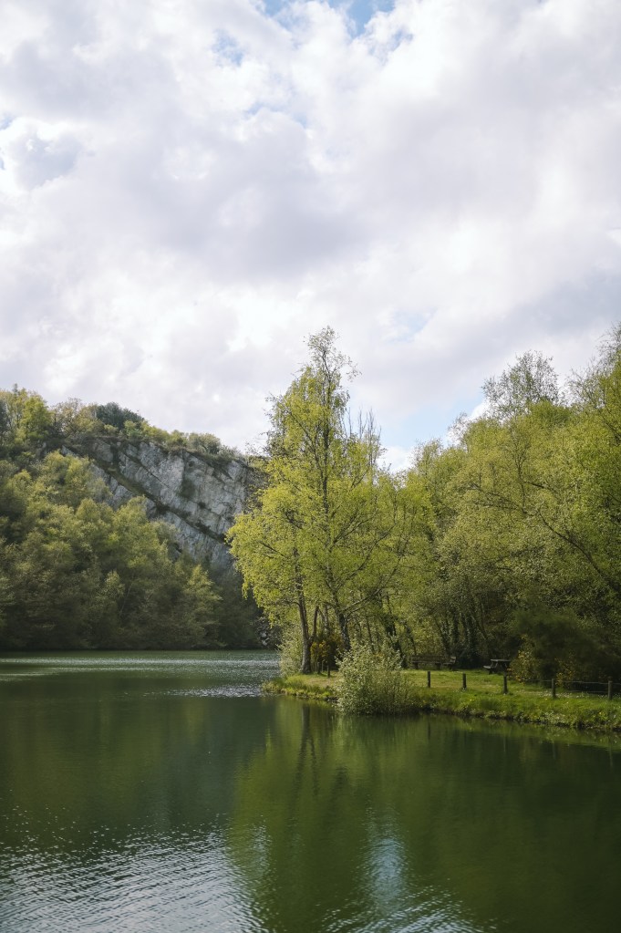 Nicht weit von Sainte-mère-l’église haben wir dann noch eine kleine Auszeit im Grünen eingelegt. Der Circuit du Mont de Castre ist Teil einer Gebirgskette, die westlich des Regionalen Naturparks der Marais du Cotentin und Bessin liegt. Der Rundwanderweg über den Mont Castre ist ungefähr 3km lang und man trägt am besten festes Schuhwerk (vor allem wenn schlechtes Wetter sein sollte). Mit Kindern kann man die Wanderung gut machen, für kleinere Kinder hat man am besten eine Kraxe oder eine Trage dabei. Wir sind mit dem Buggy los und das war nicht immer ganz einfach 😉 Aber unsere Tochter hat geschlafen, so lange bis wir einmal herum gewandert waren und eine kleine Pause am Wasser gemacht haben. Die Aussicht war wirklich postkartenreif!
